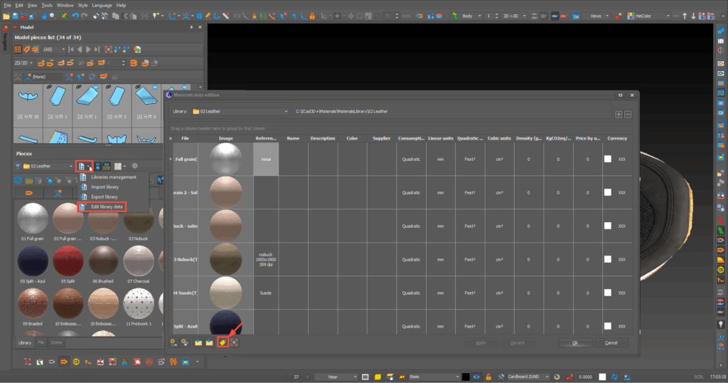– El botón “Ver los materiales con textura” mostrará todos los materiales que contengan una textura y/o al menos un mapa.