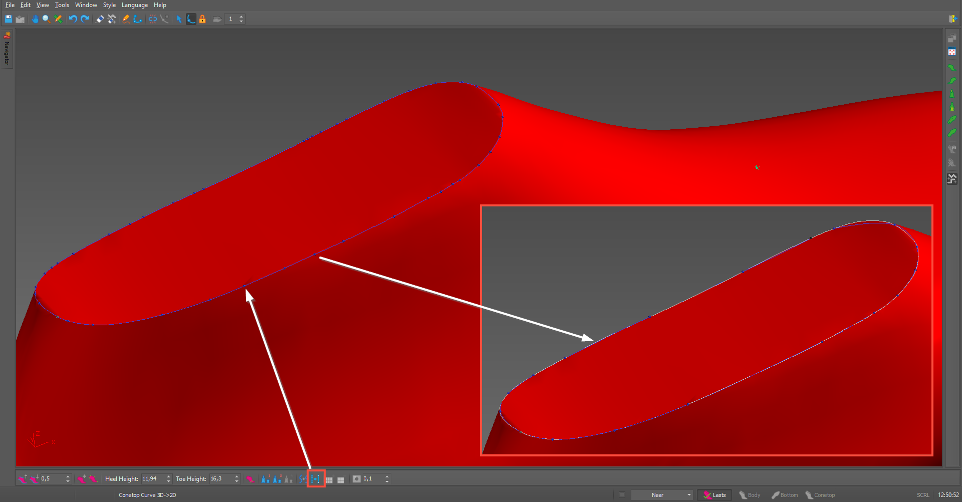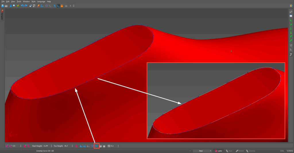 • The option to filter CONETOP and BOTTOM curves has been enabled in the section for creating lasts on three surfaces.